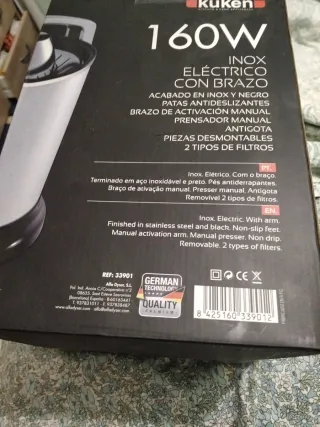 Exprimidor eléctrico, sin estrenar. Se encuentra en su embalaje original. - Diseño compacto y fácil de usar. - Incluye manual de instrucciones.