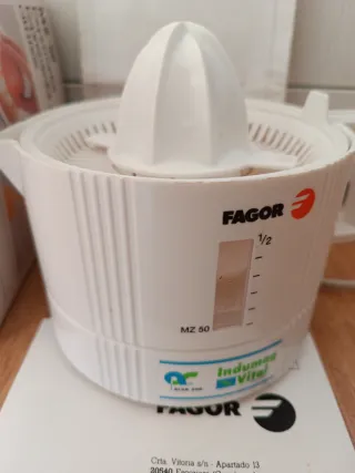 Exprimidor de cítricos Fagor MZ-50. - Potencia: 22W. - Voltaje: 220V-230V. - Incluye manual de instrucciones.