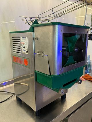 Exprimidora automática ZUMMIT de acero inoxidable y plástico verde. Ideal para preparar zumos frescos. La. quiero vender porque creo yo que la naranja no se aprovecha al 100% Como así una manual . funciona a la perfección. Hice fabricar la máscara frontal la sustituí por acero inoxidable con un visor transparente . porque la que llevaba estaba defectuosa. - Diseño robusto y profesional. - Panel frontal con rejilla de ventilación. - Ventana transparente para ver el interior. - Base con patas de goma.