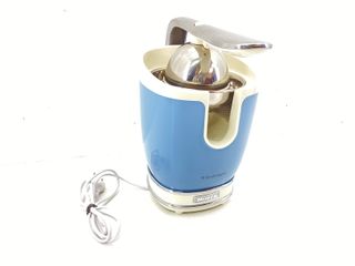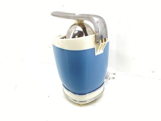 Exprimidor de diseño moderno en color azul y negro. - Capacidad máxima de 1000 ml. - Incluye asa para facilitar su transporte. - Base antideslizante. **No incluye la caja original ni los manuales** Se envía o entrega en Basauri.