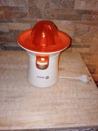 Exprimidor en muy buen estado y plenamente funcional. Color blanco y naranja.