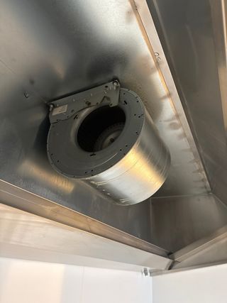 Campana extractora industrial de acero inoxidable, lista para instalar. Incluye el motor. - Material: Acero inoxidable. - Diseño profesional para cocinas. - Incluye motor de extracción.