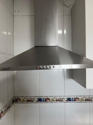 Campana extractora de la marca Cata, con un diseño moderno y acabado en acero inoxidable. - Acabado en acero inoxidable. - Diseño elegante. Usada 6 meses. Vendemos por cambio de cocina.