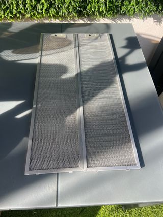 Juego de dos filtros antigrasa para campana extractora. Medidas en las fotos - Material: Metal. - Diseño de malla. - Marco de aluminio.