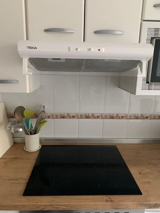 Conjunto de horno y placa vitrocerámica de la marca Teka (50€). La campana se puede vender junta o por separado (está nueva). - Horno con acabado en acero inoxidable. - Placa vitrocerámica de cuatro zonas. - Campana extractora Teka sin apenas uso.