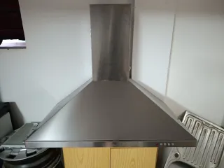 Campana extractora de gran tamaño, fabricada en acero inoxidable. - Diseño robusto y duradero. - Ideal para cocinas profesionales. - Múltiples filtros para una extracción eficiente.