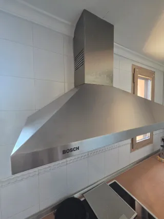 Campana extractora de la marca Bosch, con un diseño moderno y elegante en acero inoxidable. - Acabado en acero inoxidable. - Diseño moderno. Se vende por reforma de cocina. Solo tiene 3 años. El alto es ajustable a la altura del techo que se requiere.