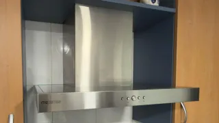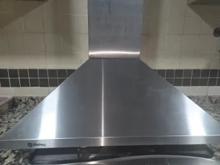 Se vende campana extractora de cocina marca Balay, con diseño moderno y elegante en acero inoxidable, ideal para dar un toque profesional a cualquier cocina. ✅ Características: • Marca: Balay • Material: Acero inoxidable • Filtros metálicos integrados, fáciles de desmontar y limpiar • Botonera frontal para control sencillo • Buena capacidad de extracción de humos y olores • Diseño compacto y resistente • Iluminación integrada • Funciona 🧼 Estado: usada, con señales normales de uso, pero en buen estado general y totalmente operativa. 💬 Ide