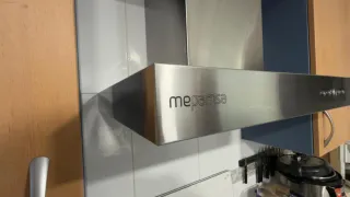 Campana extractora de la marca Mepansa, con un diseño moderno y elegante. - Acabado en acero inoxidable. - Panel de control con botones. - Diseño de pared. - Tiene 2 años y muy poco uso.