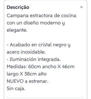 Vendo campana extractora Balay en acero inoxidable. Funciona correctamente. ✔️ Marca Balay Preciosa, queda genial en la cocina, la viste muchísimo ✔️ Uso normal, con marcas estéticas del tiempo y filtros usados, puede necesitar limpieza ✔️ preparada para recoger e instalar. Medidas: 90x52 📍 Recogida en Les Corts, cerca de Illa Diagonal (Barcelona). ⏰ IMPORTANTE: Disponible solo hasta el martes 20 de enero. Si no se vende antes, me la llevaré a otro piso. 💬 Se hace oferta si se compra junto con otros electrodomésticos. 👉 Precio muy bajo por mudanza