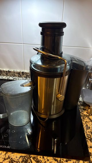 Extractor de zumo Cecotec Juice&Fresh, utilizado una sola vez. Se encuentra en perfecto estado. - Diseño moderno en acero inoxidable y azul. - Incluye manual de instrucciones.