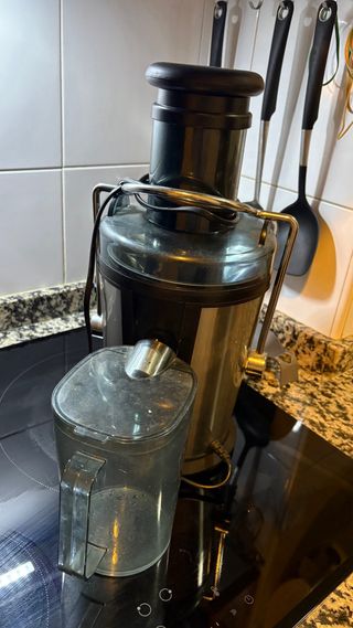 Extractor de zumo de la marca Tropic Palson. Se encuentra en buen estado. - Diseño moderno en acero inoxidable y plastico. Color negro. - Incluye recipiente para el zumo. - Usado pero en buene stado. Funciona perfectamente.