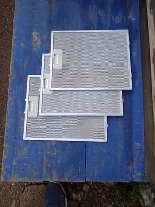 Se venden filtros nuevos para campana extractora de cocina. Son de metal y tienen una pestaña para su extracción. Los dos por 8 euros - Material: Metal. - Diseño: Malla.