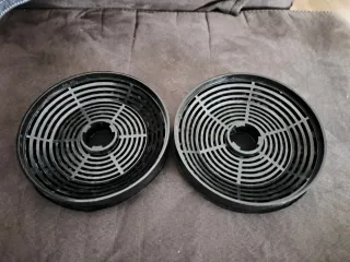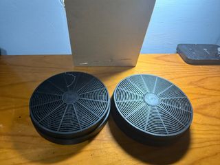 Filtros de carbón CARBFILT21 de Cooke & Lewis, nuevos. - Son dos filtros de carbón para campana extractora. - Medidas: 34,7 mm de alto y 176 mm de diámetro. - Están en su caja original.