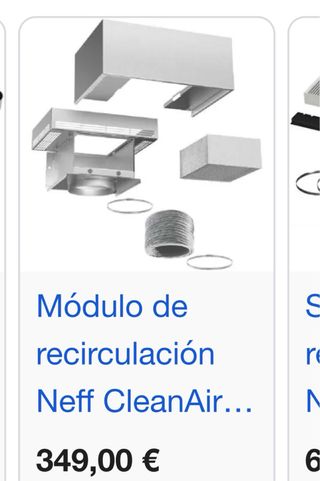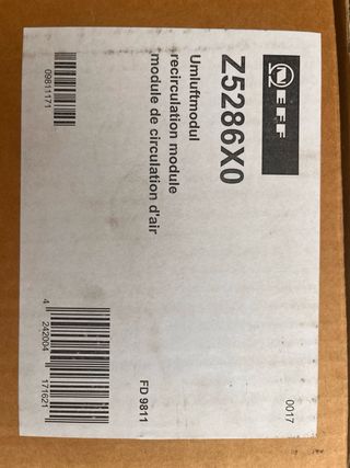 Kit de recirculación para campana extractora Neff, modelo Z5286X0. Incluye todos los componentes necesarios para su instalación. - Módulo de recirculación. - Filtro de carbón activo CleanAir.