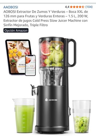 Extractor de zumos y verduras AAOBOSI. Nuevo a estrenar . - Boca XXL de 126 mm. - Capacidad de 1.5 L. - Potencia de 200 W. - Tecnología Cold Press Slow Juicer. - Sinfín mejorado y triple filtro.