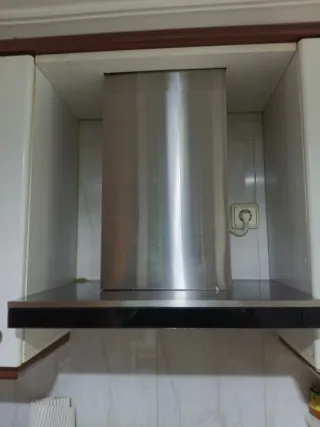 Campana extractora retráctil de la marca Balay. Con 3 potencias y luz ( dos bombillas) inoxidable y chapa de color gris. Ahora mismo está en el mueble. Lo puedo vender con mueble y puertas o solo el extractor. Funciona perfectamente y no tiene grasa. El precio no incluye el mueble!!