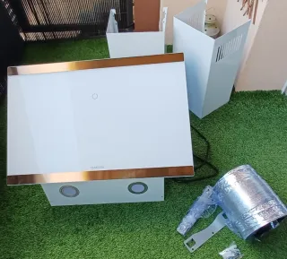 Campana extractora de 70cm de ancho, con un diseño moderno y funcional. No va la luz. El resto funciona perfecto. Hemos cambiado la cocina y hemos puesto una integrada de Ikea.