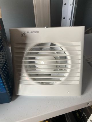 Extractor de baño con temporizador, tiene 2 años y lo tuve que cambiar por otro más corto porque tras una obra ya no me entraba en el hueco. Ideal para mantener una ventilación adecuada. Necesita 3 cables para funcionar. Es el modelo del Leroy, vale 32eur nuevo. - Temporizador ajustable. - tiene un poco de mierda que se puede quitar
