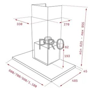 Campana extractora decorativa de pared Control Air. - Modelo: PH II 900 - Acero inoxidable - Caudal: 645 m³/h - Nivel de ruido: 54 dB - 3 velocidades - Iluminación LED - Voltaje: 220V - 240V ~ 50Hz