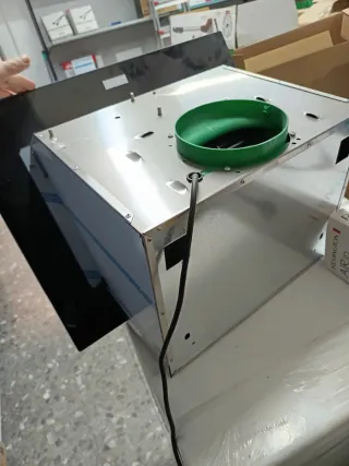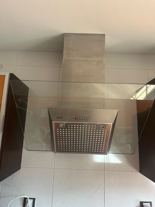 Vendo campana extractora decorativa Fagor modelo 3CFT-610N en acabado cristal negro. La compré el 30 de abril de 2023 para una reforma que finalmente no se realizó, por lo que está totalmente nueva, nunca se ha llegado a instalar. Características principales: Diseño elegante: Acabado en cristal negro, ideal para cocinas modernas. Potencia: 3 niveles de extracción + modo Turbo. Iluminación: Luces LED de bajo consumo. Dimensiones: 60 cm de ancho (estándar). Panel táctil: Muy fácil de limpiar y usar. Conservo la factura de compra para el tema de la garantía (Leroy Merlin).