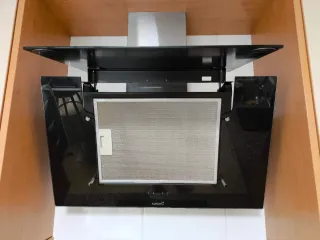 Campana extractora decorativa inclinada con acabado en cristal negro. - Ancho de 70 cm. - Diseño moderno e inclinada. -Panel digital 5 velocidades más intensiva -luz led -Filtro aluminio multichapa lavable lavavajillas (Ver ficha características) Muy poco uso, la vendo por cambio de cocina