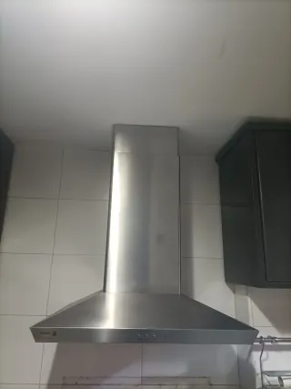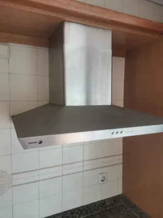 Campana extractora de la marca Fagor con pantalla táctil y funcionamiento correcto Tal y como se ve en las fotos... también bastante limpia - Acabado en acero inoxidable. - Tres filtros metálicos. - Dos luces integradas.