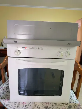 Se vende conjunto de horno y campana extractora. - Horno blanco marca Fagor. - Campana extractora gris marca Teka.