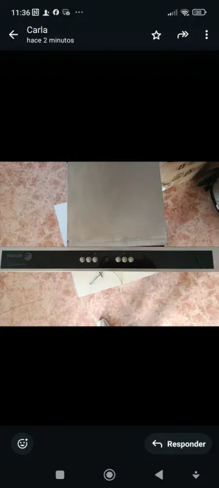 Vendo campana extractora funcionando en perfectas condiciones, motivo de venta, cambio de cocina. No envío, a recoger en persona donde la tengo guardada. Medidas: 60 cm de alto y 80 cm de ancho.