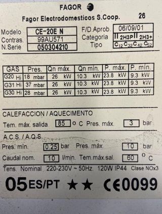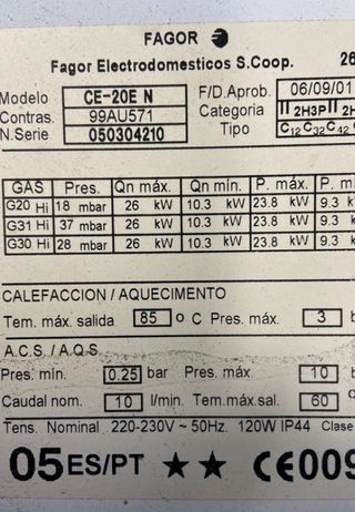 Repuestos de Caldera Fagor CE 20E N Placa Electrónica / intercambiador primario / Válvula de 3 Vías / Bomba de agua / Extractor / Válvula de gas / presostato / vaso de expansión /cuerpo de agua Nuestros recambios están comprobados **Con garantía** Tienda física, en Coslada, ENVIOS URGENTES 24H Gran stock en despieces fa-23e FA-23E FE-18E FE-24E y FE-27 FE-24 EC FE-24 EMA FE-27EMA FE-30E CE-30E FEB-20E contract mini ce 24e fa 23 e e **Atendemos WHATSAPP Encuentre nuestro telefono en nuestro perfil.**