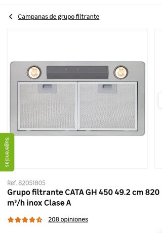 Campana extractora de cocina en color blanco. Diseño moderno y funcional.Campana De Techo GRUPO FILTRANTE G 45WH de la marca Cata. Cuenta con una potencia de extracción máxima de 340 m3/h, un total de 2 velocidades, un nivel de ruido en velocidad máxima de 55 dB en color blanco. Diametro del tubo de salida de aire 120 Anchura 51 cm Profundidad 30 cm Peso 7 kg - Acabado en metal. - Incluye cableado para instalación. 3 años de uso.