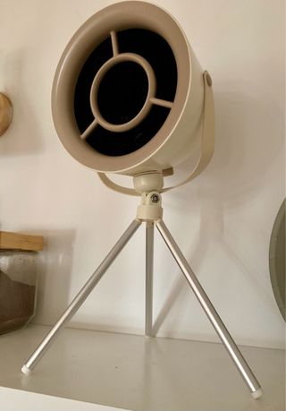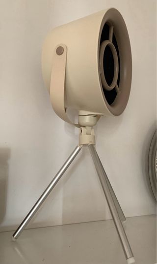 NUEVO. Extractor portátil con un diseño retro y moderno, montado sobre un trípode. 3 velocidades, filtro extraíble y lavable, otro de repuesto. - Cuerpo principal en color crema y beige. - Rejilla frontal circular con detalles. - Trípode metálico plateado con patas ajustables, se pueden quitar y tiene la opción de colgar del techo. - Base giratoria para orientar el extractor. Alimentado por USB. Interiores o exteriores, Camping furgo o al Aire Libre.