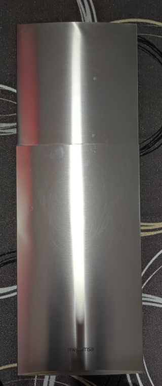 Campana extractora de cocina Mepansa de 90cm de ancho, cristal y acero inoxidable. Con muy poco uso cambiada porque empezó a fallar un botón y después de instalar la nueva se le han sustituido todos los botones, por lo que ha quedado en muy buen estado. Tiene los embellecedores de tiro largo por lo que se puede adaptar a techos altos sin problema.