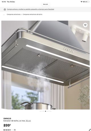 Campana extractora de techo Ikea, en acero inoxidable. Ideal para cocinas modernas. - Diseño integrado y elegante. - Material: Acero inoxidable. - Buen estado.