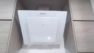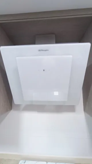 Campana extractora de cocina marca Orbegozo. Diseño moderno en color blanco. 70 cm de ancho - Acabado en cristal blanco. - Panel de control integrado. Se vende en perfecto funcionamiento, mucho poder de absorcion y muy silenciosa. 3 velocidades. Poco uso