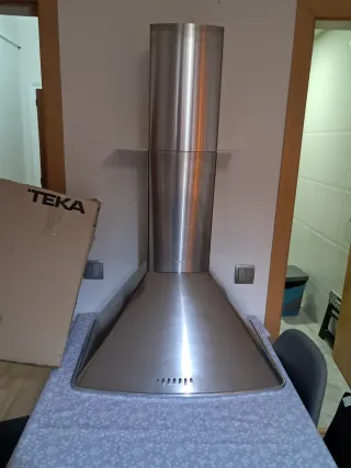 Campana extractora de la marca Teka, con un diseño moderno y acabado en acero inoxidable. - Material: Acero inoxidable. - Diseño triangular. Funciona perfectamente, la cambio por haber reformado la cocina.