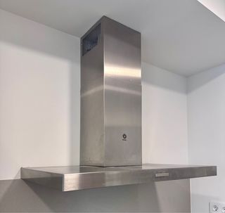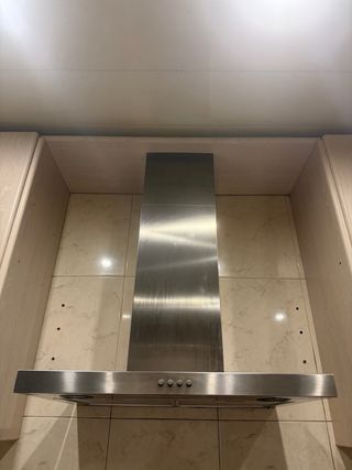 Campana extractora de pared con acabado en acero inoxidable. Diseño moderno y funcional para tu cocina. - Material: Acero inoxidable. - Tipo: Campana de pared. No Incluye filtros Nunca se ha usado aunque ha estado instalada.