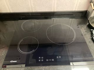 Vitrocerámica Candy de cuatro fuegos con campana extractora. - Diseño moderno y elegante. - Superficie lisa y fácil de limpiar. - Controles táctiles intuitivos.