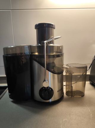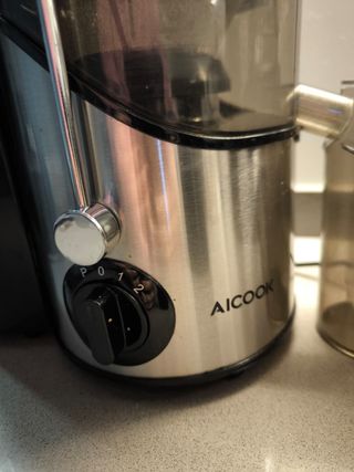Licuadora Aicook en perfecto estado, ideal para preparar zumos frescos. - Diseño moderno en acero inoxidable y plástico. - Incluye recipiente para el zumo. - Panel de control con varias velocidades.