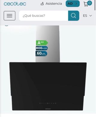 NUEVA A ESTRENAR. Embalada y en su caja. Campana extractora decorativa de 60cm de ancho, acabado frontal en vidrio negro y chimenea de inox. - Succión de 800m3/h. - Motor de 210W - Maximo ahorro: Clase A++. - Control táctil con 3 niveles de potencia. - Fuera malos olores: incluye dos filtros de carbono de D176 - Función Booster. - Iluminación LED. - Hand Movement Control: la campana se puede controlar a través de gestos con la mano. - Delay Function: no te preocupes por apagar tu campana. precio original: 189€