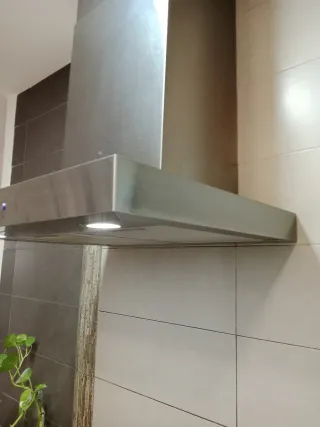 Campana extractora de acero inoxidable con diseño moderno. - Acabado en acero inoxidable. - Iluminación LED integrada. - Marca: Mepamsa.