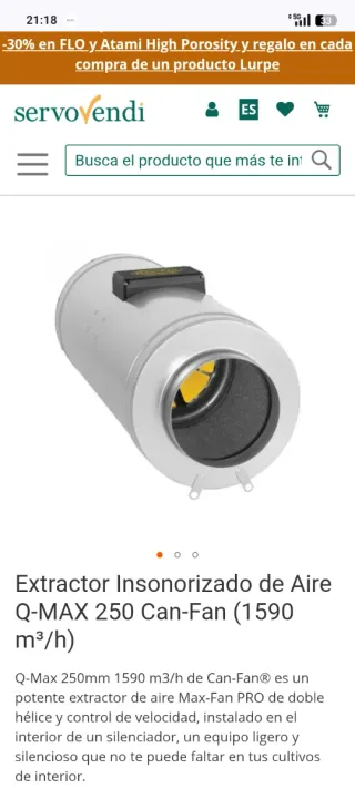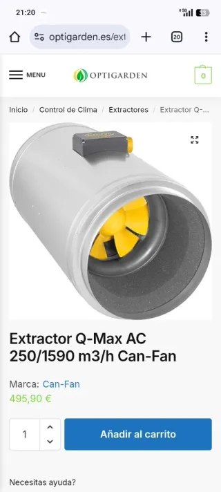 Extractor de aire Q-Max AC con boca de 250mm. - Caudal de 1590 m3/h. - Marca: Can-Fan.
