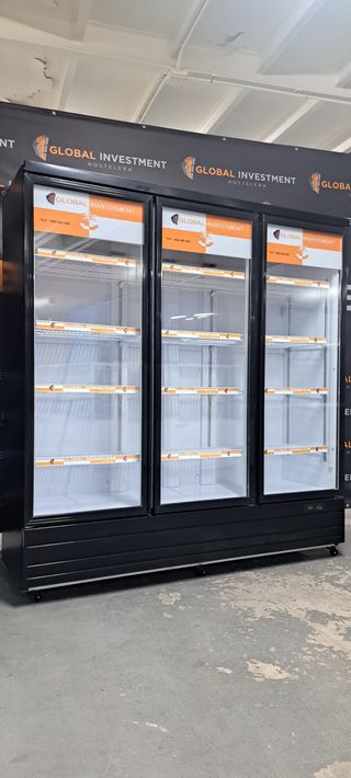Nevera expositora de bebidas con tres puertas, luz led, frio ventilado, 4 parrillas, ruedas, 998 litros, maquinarias de hosteleria, iva y transp n/i. vitrina carnicera, vitrina pastelera, cocina a gas, cocina industrial, barbacoa a gas, parrilla a gas, plancha cromo duro, freidora gas, campana extractora, camara fria, mesa de trabajo, fregadero industrial, crepera, grill, horno pizza, asador kebab, picadora, amasadora, batidora, cortadora, embutidora, envasadora, armario expositor, baño m, nevera de bebidas, nevera acristalada de bebidas, bajo mostrador, mesa fria, botellero, mural expositor, saladette, foodtruck, vitrina expositora