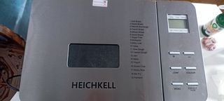 Panificadora HEICHKELL con múltiples funciones. - 19 programas preestablecidos. - Funciones yogur, mermelada, sticky rice, stir fry y fermentar. - Incluye libro de recetas y manual de instrucciones además de bol y cuchara medidores - El gancho se ha quemado (mira fotos), pero sigue funcionando además que no se necesita para ninguna función, es solo opcional