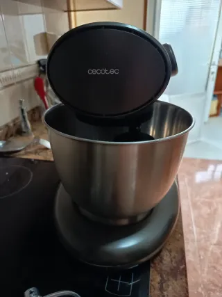 Batidora amasadora Cecotec Cecomixer Compact en color negro. Cuenta con un bol de acero inoxidable y tapa transparente. - Potencia de 1000 W. - Movimiento planetario. - 6 funciones. - 4 niveles de velocidad.