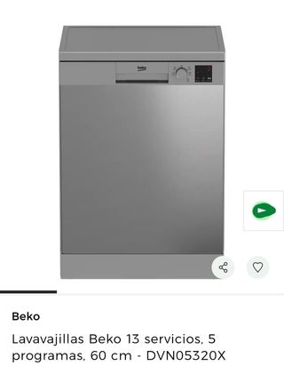 Lavavajillas Beko de libre instalación con capacidad para 13 servicios y 60 cm de ancho Color acero inoxidable Comprado en mayo 2025, se vende por traslado. Funciona perfectamente