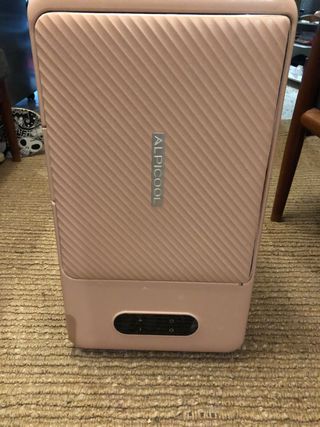 Nevera portátil de color rosa con diseño texturizado. - Marca: ALPICOL - Panel de control con botones +/- y un botón de encendido/apagado. Alpicool S15 16,8L Nevera Portátil Eléctrica Refrigerador de Coche, 12V 24V/CA 220v mini frigorífico para Hogar,Camping, Viajes,Automóvil, 20ºC a 20ºC con USB (Rosa)