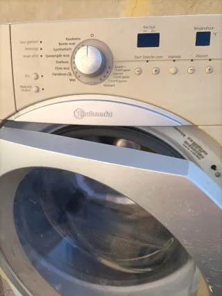 Lavadora Bauknecht con varios programas de lavado. - Programas: Kookwas, Bonte was, Synthetisch, Gemengde was, Snelwas, Fijne was, Handwas, Wol. - Opciones: Spoelen, Centrifugeren, Intensief Centrifugeren, Centrifugeren, Abompen. - Funciones adicionales: Waterstop, Eco, Makkelijk Strijken. - Pantalla digital para Rest.tijd y Temperatuur.