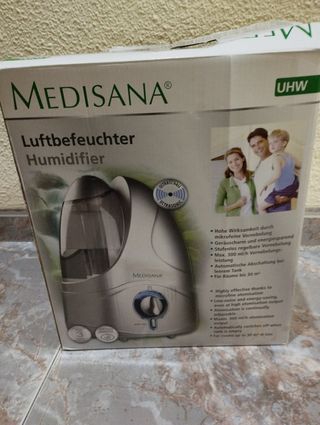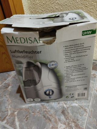 Humidificador Medisana UHW, comprado en Amazon, nuevo cuesta 43 euros. Funciona perfectamente, la caja está dañada por el uso.