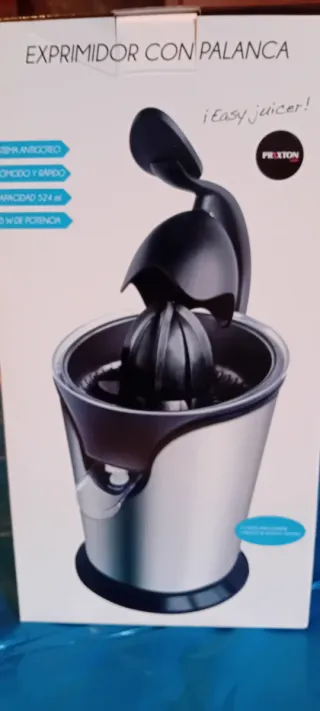 Exprimidor de cítricos con palanca de la marca Prixton. Su diseño facilita la extracción de zumo. - Sistema antigoteo. - Cómodo y rápido. - Capacidad de 524 ml. - 25 W de potencia.
